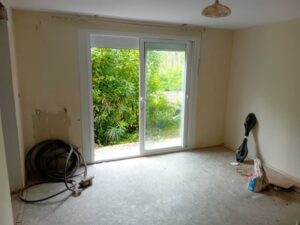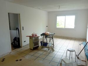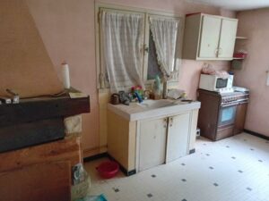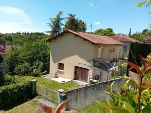 AUCH ville haute, proximité tribunal et centre-ville. HABITATION : Charmant pavillon de 102m² à finir de rénover (carrelage et sanitaires) sur S/Sol total comprenant en RDC surélevé : entrée, cuisine ouverte sur séjour, 3 chambres avec parquet, pièce pour salle d’eau, wc. En S/Sol : 3 pièces, garage grande remise (50m²) sous terrasse. Chauffage par pompe à chaleur en RDC, fenêtres PVC double vitrage avec volets roulants électriques (solaires). Jardin clos de 467m² sur deux niveaux avec arbres fruitiers. Assainissement collectif. TERRAIN : 467 m²